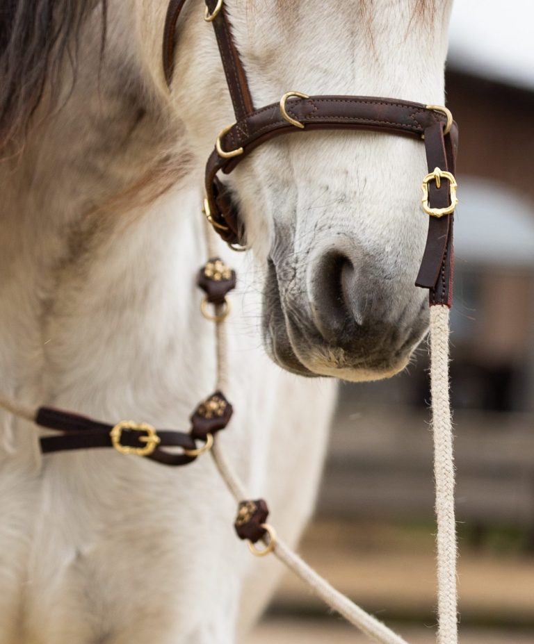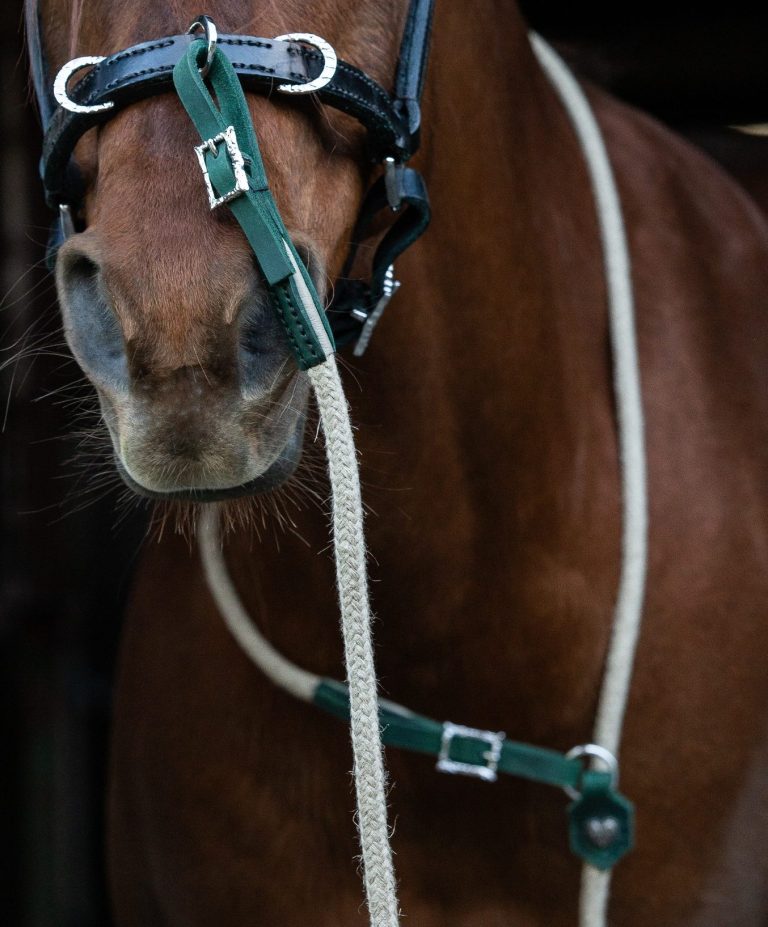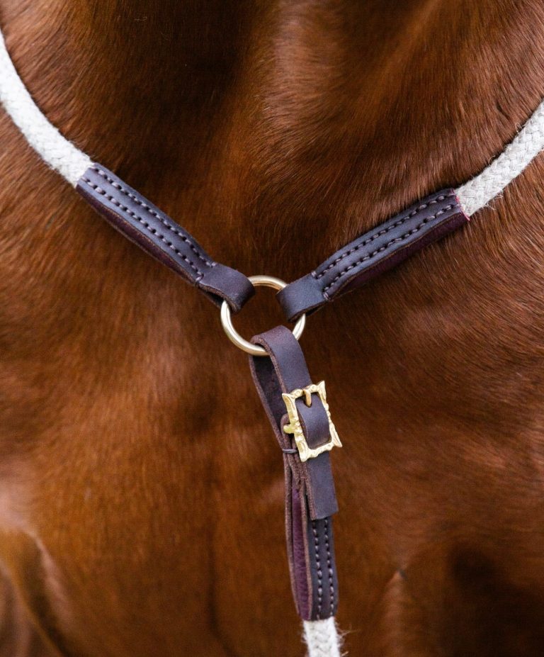 Der Halsring wird individuell auf den Halsumfang deines Pferdes angepasst. Er ist mit einem Ring ausgestattet, in welchen man ein Bodenarbeitsseil oder Kombitrainingsseil einschnallen kann (siehe Bild) - Ein vielfältiger Alltagsbegleiter für Reiten, Bodenarbeit oder Freiarbeit.